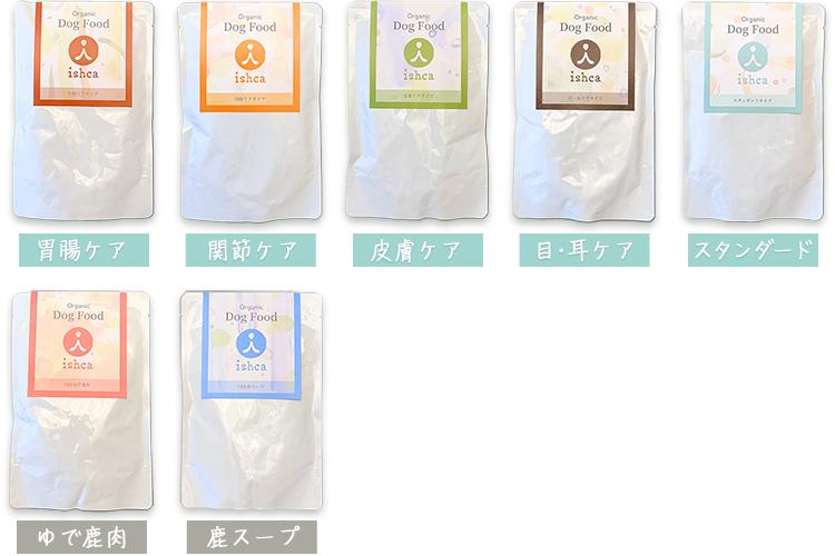 ベーシックラインは5アイテム。加えてトッピングやおやつにも使える「ゆで鹿肉」、じっくり煮込んで旨みが凝縮された「鹿スープ」もご用意しました。