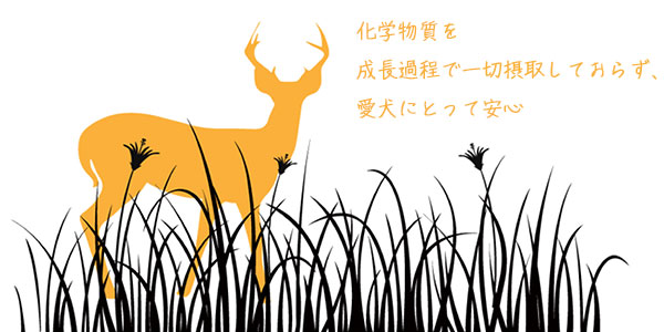 鹿肉は高タンパク低カロリーなお肉です。鉄分の含有量は鶏肉の15倍、アレルギーリスクが低いといわれています。野生のシカは家畜の飼料などに含まれる化学物質を摂取していないため、安心して与えられるタンパク源です。
