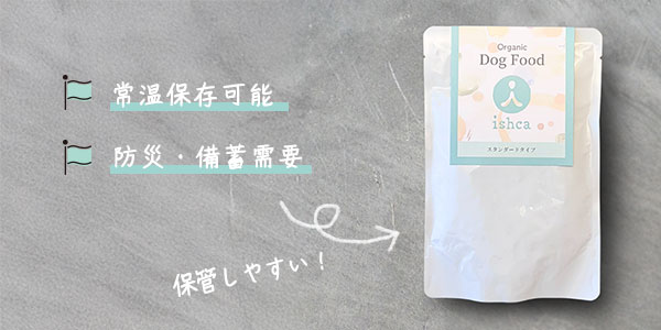 常温保存ができて便利なレトルトパウチのウェットドッグフードです。長期保存できるので、万が一の備えにもぴったりです。