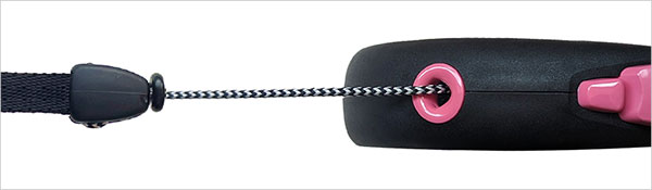 - 巻取り口の形状により、テープはきれいに巻き取られ、スムーズな伸縮されます。テープが全て巻き取られるとワンちゃん、ネコちゃんを近い位置でコントロールすることが出来ます。幅の広いテープは、コードタイプよりも丈夫です。