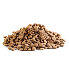 加熱処理がされた水分量10%以下の固形フードで、文字通りドライで固い粒です。風味が出づらいので多くのキャットフードはオイルスプレーがされています。