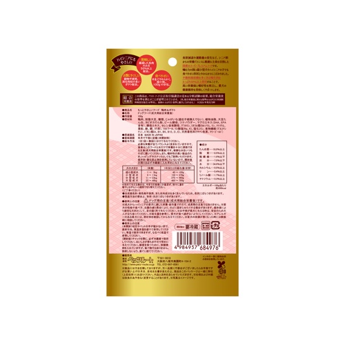 - 成分値:たんぱく質 18.0%以上、脂質 8.5%以上、粗繊維 1.0%以下、灰分 7.0%以下、水分 34.0%以下、カルシウム 0.5%以上、リン 0.4%以上、リノール酸 1.7%以上、ナトリウム 0.3%以上エネルギー:100g当たり300kcal
