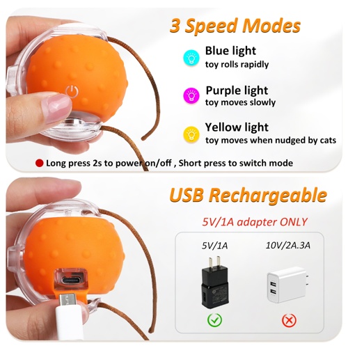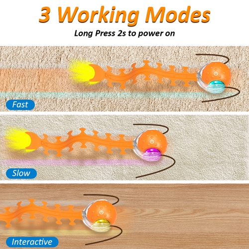 5分間作動するとスタンバイモードに切り替わり、1時間後に再び1分作動。ペットが触れると再び5分動作します。3種のモードで猫ちゃんにあった動きが可能です。